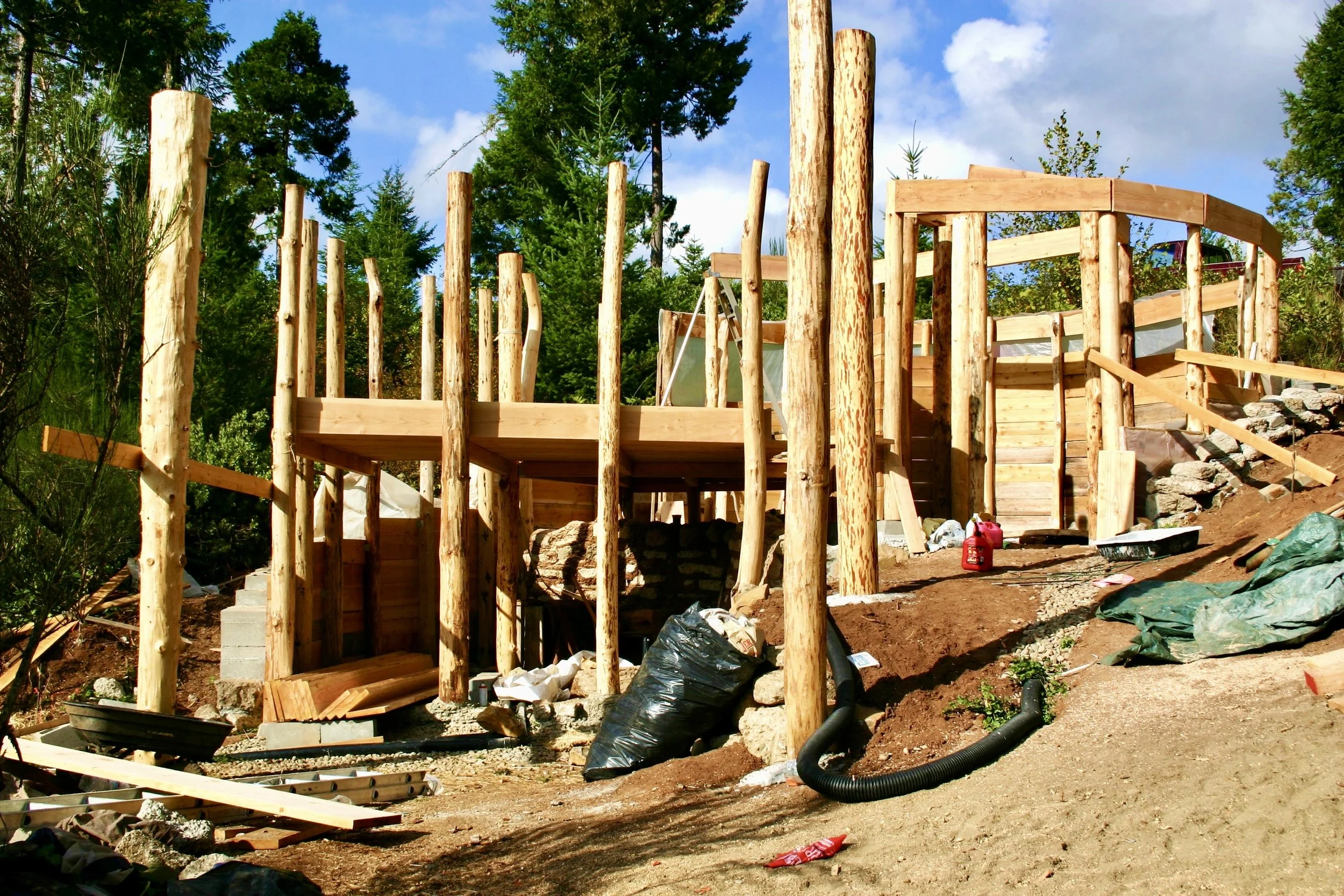 September 26, 2008, Snail shell house with the uprights in place. You can see the three levels.