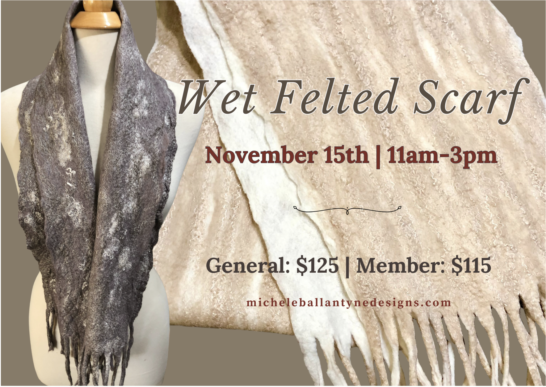 As requested, Michele Ballantyne will be returning to the Oregon Garden to guide you through a wet felting scarf making workshop!